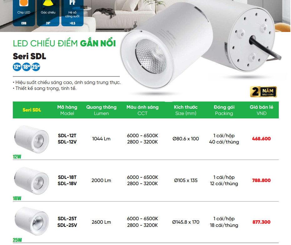 Đèn Led Chiếu Điểm Gắn Nổi 12W SDL-12T