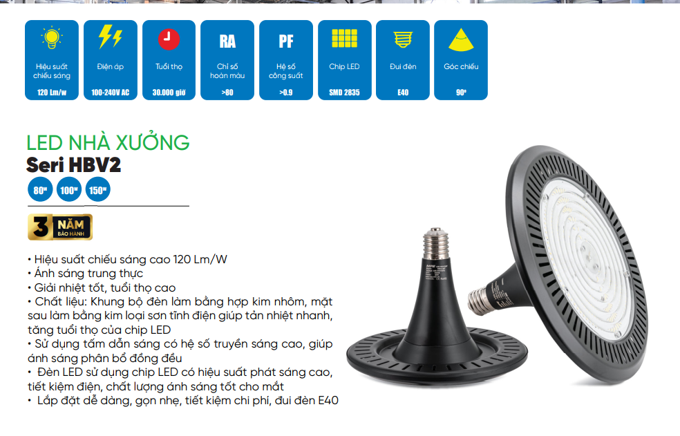 - Đảm bảo ánh sáng luôn ổn định, độ bền cao.